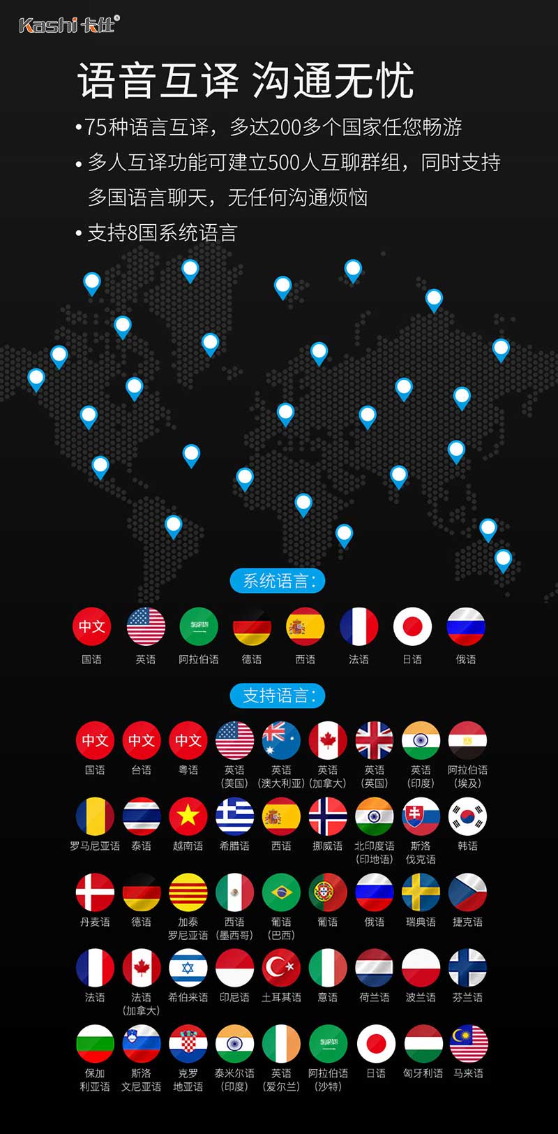 卡仕公司是一家集翻譯器,翻譯機(jī),翻譯棒,同聲翻譯機(jī),語音翻譯機(jī),智能鼠標(biāo),翻譯鼠標(biāo),兒童智能機(jī)器人,研發(fā),生產(chǎn),銷售,招商代理加盟為一體的專業(yè)廠家,深圳翻譯機(jī)服務(wù)熱線: 0755-88860121,代理加盟熱線:13824313231