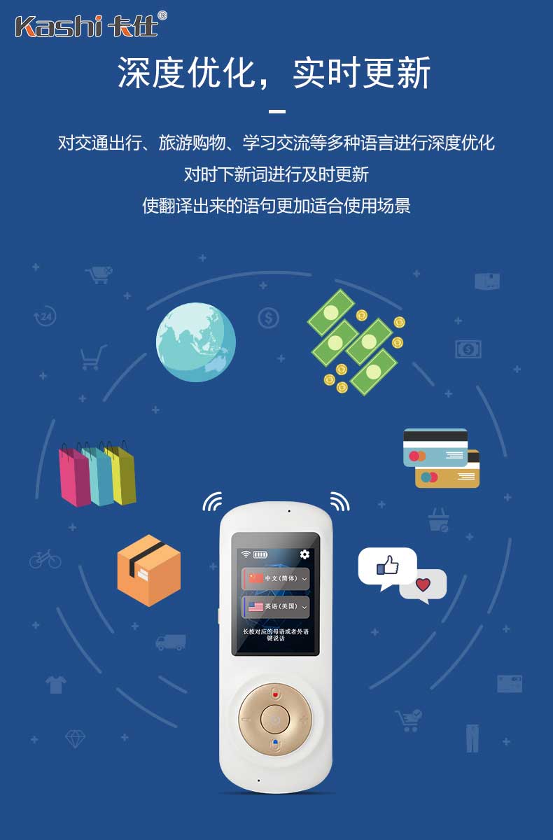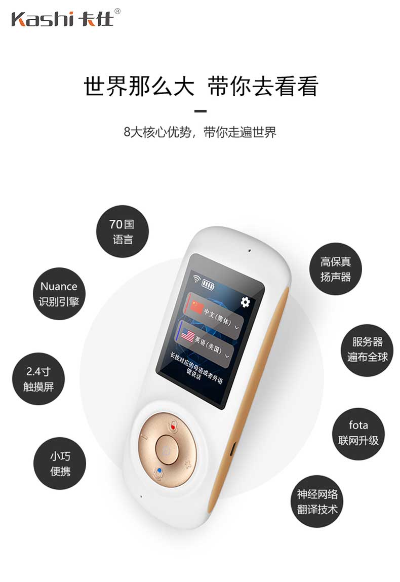 卡仕公司是一家集翻譯器,翻譯機(jī),翻譯棒,同聲翻譯機(jī),語(yǔ)音翻譯機(jī),智能鼠標(biāo),翻譯鼠標(biāo),兒童智能機(jī)器人,研發(fā),生產(chǎn),銷售,招商代理加盟為一體的專業(yè)廠家,深圳翻譯機(jī)服務(wù)熱線: 0755-88860121,代理加盟熱線:13824313231